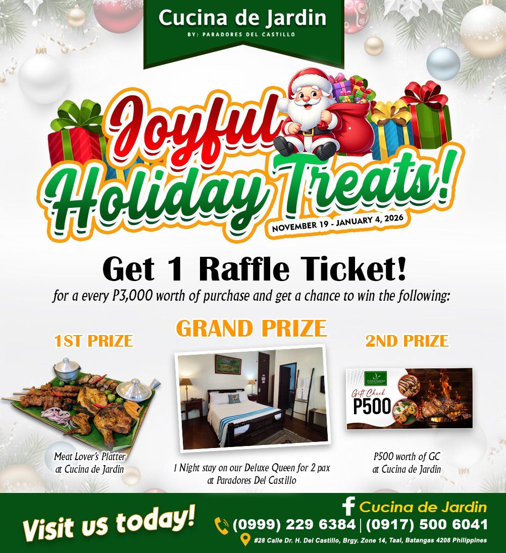 Enjoy the best outdoor dining experience in Taal, Batangas. Delight in the panoramic countryside views and refreshing garden vistas. Indulge in the savory cuisine which we offer.